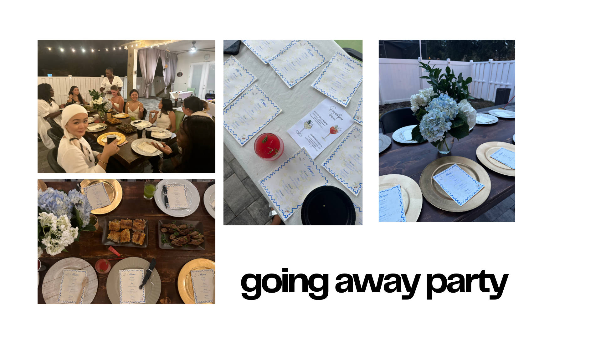 I orchestrated a memorable Potluck Friendsgiving event, incorporating strategic planning and creative direction. I developed and distributed mood boards to ensure cohesive photo aesthetics, managed guest communications through digital invitations, and implemented a streamlined system using Google Forms to track dietary restrictions and potluck contributions. I then curated a comprehensive menu and designed an elegant tablescape to enhance the dining experience.